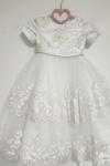 レビュー: フラワーガールドレスホワイトジュエルネックレース半袖ティーレングスAラインレースフォーマルキッズページェントドレス