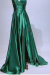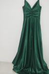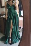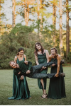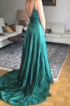 レビュー: フォレストグリーンのブライドメイドドレス Aライン マキシレングス バックレス 弾性 サテンのようなシルク Vネック フォーマルガウン 自由なカスタマイズ