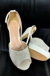レビュー: グリッターウェディングシューズ PUレザー ピープトウ パール ハイヒール ブライダルパンプス