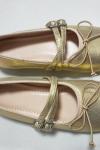 ゴールド バレエ フラット リボン ストラップ 調節可能 スクエア トゥ バレリーナ フラット