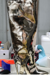 レビュー: ゴールドコンバーチブルニーハイブーツ メタリックミラー ブライトレザー 膝丈 プロムパーティーブーツ