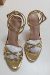 レビュー: ゴールドパーティーシューズ メタリックオープントゥ クリスクロス アンクルストラップ ハイヒールサンダル