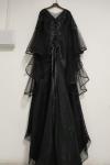 レビュー: ゴシックブラックのウェディングドレス A ライン長袖レーストレインブライダルガウン無料カスタマイズ