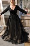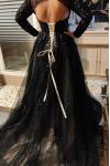 レビュー: ゴシックブラックのウェディングドレス A ライン V ネック長袖レースチュール花嫁衣装トレーン無料カスタマイズ