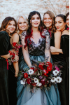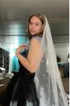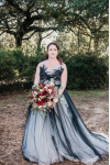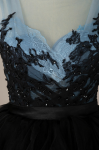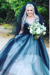 レビュー: ゴシックブラックのウェディングドレス A ライン V ネックノースリーブ夜会服チュールレースの花嫁衣装無料カスタマイズ