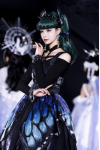 レビュー: ゴスロリ蝶 JSK ドレス ブルー ノースリーブ レースアップ フリル リボン ポリエステル カジュアル ロリータ ジャンパー スカート
