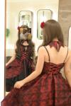 レビュー: ゴシックロリータドレス レースフラワージャカード バーガンディ ブラック レッド JSK