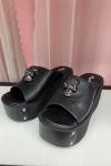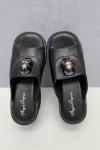 ゴスロリ サンダル ラウンドトゥ PU レザー ブラック ロリータ 夏靴