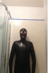 レビュー: 全身タイツ ラテックスキャットスーツ ブラック メタリック 目と口が開いている ハロウィン コスチューム 大人用