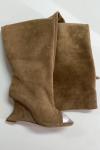 ハイヒールブーツ スエード ピープトゥデザインヒール オーバーニーブーツ