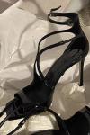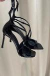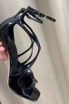 レビュー: ハイヒールサンダルブラックパテントPUアッパーピープピープトウストラッププロムシューズリトルヒールパーティーシューズ
