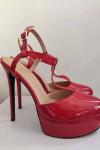 ハイヒールセクシーサンダルレッドパテントPUアッパーオープントゥセクシーハイヒールアンクルストラップヒール