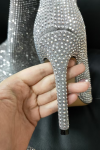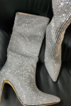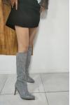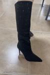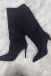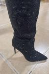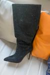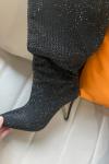 レビュー: ハイヒールワイドカーフブーツ女性ラインストーンポインテッドトゥスティレットニーハイブーツセクシーなパーティーシューズ