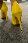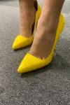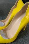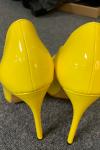 レビュー: ハイヒール ポインテッドトゥ パンプス ピンヒール12cm シューズ パテントレザー イブニングパンプス スリップオン レディース靴 イエロー