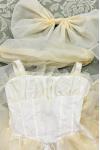 このドレスは完璧でした!まさに探していた衣装です。ただ、丈が短いのでご注意を。身長165cm、体重58kgです。真ん中の部分にコルセットの紐がついていて、お好みの締め具合にできます。色のコントラストが欲しかったので、結局別のコルセットで隠しました。