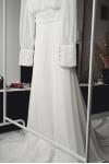 Muy bonito y bien cosido. Cogi mas talla por si acaso me quedaba muy justo de pecho y tengo que arreglarlo ahora . Contaba con ello. Es mas blanco que color marfil . Es bonito tambien