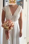 This jumpsuit was just what I imagined. It made my special day memorable. I receive compliments all the time and recommend to my friends. Love the practice that you can pay and try at home, which I did and selected from the two previous options I gad before and narrowed down to this. Couldn’t be happier. I dont wish to get marry again but I do wish having wedding clothing every year on my anniversary.