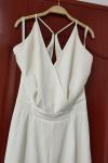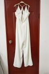 レビュー: アイボリーブライダルジャンプスーツ フロアレングス Aライン Vネック ノースリーブ 無料カスタマイズ
