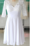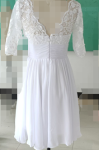 レビュー: アイボリーショートウェディングドレス 膝丈 Vネック ハーフスリーブ Aライン シフォンブライダルドレス 無料カスタマイズ