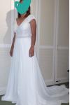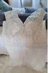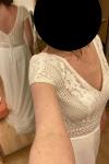 レビュー: アイボリーのシンプルなウェディングドレスAラインVネック半袖背中の開いたレースシフォンブライダルガウン