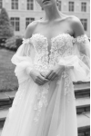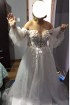 The small is beautiful and fits tailor-made on my body. However, I am extremely disappointed by the tulle sleeves.... They are way too short. This looks disastrous... I am trying to reach the manufacturer for new sleeves. So I can not wear the dress to my wedding... and that although I have given the exact measurements.