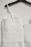 レビュー: アイボリーシンプルなウェディングドレスサテン生地レースVネックノースリーブロングブライダルドレス