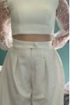 Ensemble trs jolie j’adore, une grande pour moi, j’ai du apres l’avoir recu et essayer l’a m’emmener chez une couturiere car il y avait pleins de retouches faire, (pantalon trop grand et trop long) et le bustier trop grand egalement.