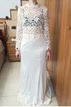 レビュー: アイボリー ツーピース ウェディング ドレス レース ハイカラー マーメイド トレーン 3/4 袖ブライダル ドレス無料カスタマイズ