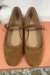 レビュー: カーキ スエード バレエ フラット スクエア トゥ メリージェーン フラット シューズ