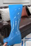 ニーハイウェッジブーツ 伸縮性のあるラウンドトゥの膝丈ブーツ