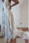 En general me ha encantado el vestido. Lo pedí marfil y lleva como un tul debajo con bonita caída si es planchado en color vainilla Permite que se vea mejor el bordado. El ajuste fue bastante bueno, en altura estuvo perfecto de largo. el entalle de la cintura también. Tuvimos que ajustar el escote por que con la varillas no lo llenaba. Las quitamos descosiendo con cuidado el interior del forro de pecho y listo. Añadimos 4 botones en el final de la espalda con sus presillas. Quedo fantástico. La cola es una pasada y lleva una cinta para sujetarla. compré otro cinturón para darle un toque más personal. Recomiendo mucho esta web. Me llegó muy bien empaquetado y en el tiempo previsto. Fotos : @photo_emeax