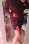 レビュー: タイトワンピース ブラック キャバドレス シック&モダン 無地 レディースファッション 長袖 シェイプアップ ショート/ミニ ボタン ラウンドネック 綿混紡 ワンピース