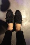 レビュー: 新学期 メンズ ブラック リベット ローファー ペニーシューズ ウェディングシューズ スリッポン ラウンドトゥ シャイニー パーティー プロムシューズ