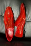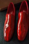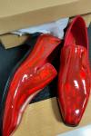 レビュー: メンズ スリッポン ローファー プロム パーティー ウェディングシューズ スクエアトゥ レッド シャイニーレザー オックスフォード