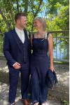 Tenue très élégante, fabrication fidèle à mes mensurations. Ensemble commandé en vert foncé, très belle couleur mise en valeur par le côté brillant de la dentelle.
