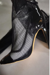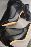 レビュー: オーバーニーブーツ ブラック メッシュ セクシー ポインテッドトゥ サイハイサンダルブーツ