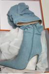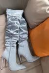 レビュー: オーバーニーブーツ ブルー ポインテッドトゥ ハイヒール スラウチ デニム サイハイブーツ