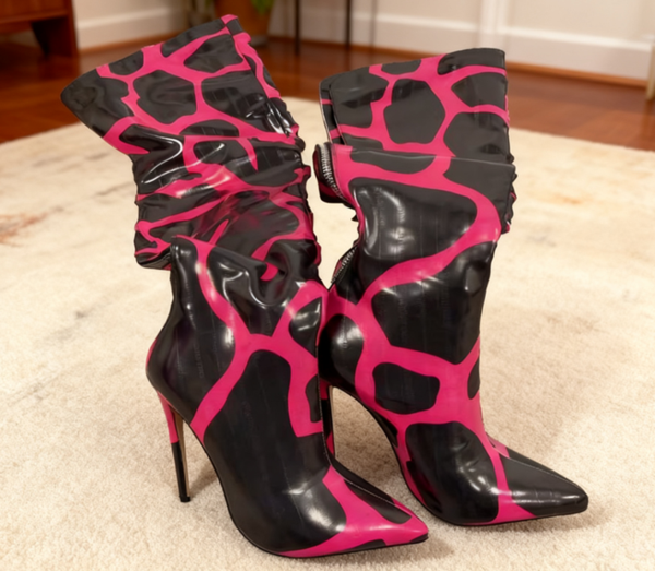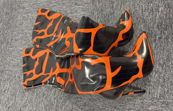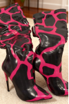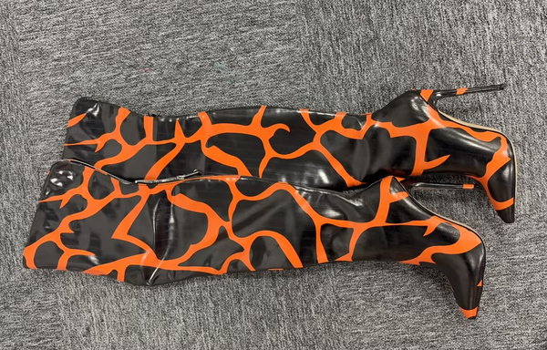 レビュー: オーバーニーブーツ ポインテッドトゥ プリントハイヒール サイハイブーツ