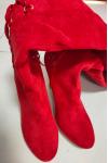 レビュー: オーバーニーブーツレッドポインテッドトゥジッパーハイヒールサイハイブーツ