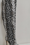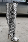 レビュー: ニーブーツ スネークプリント ポインテッドトゥ スティレットヒール サイハイブーツ レディース