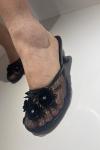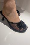 レビュー: ピンクのハイヒールミュール メッシュ ラウンドトゥ 花柄 バックレス パンプス