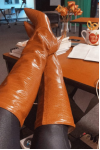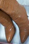 レビュー: ピンクのニーハイブーツ女性スティレットワイドカーフブーツスネークパターン明るいレザー