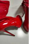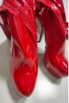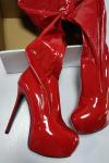 レビュー: 女性用プラットフォーム スティレット ヒール サイ ハイヒール ブーツ レッド パテント ブライト レザー