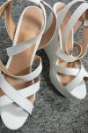 プラスサイズのセクシーなサンダル ホワイト PU レザー ウェッジヒール セクシーなハイヒールシューズ プラスサイズのシューズ
