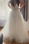 レビュー: ウェディングドレス 2026 チュール 深いvネック Aライン ノースリーブ 多層 チュール レースアップリケ クラシックブライダルガウントレーン付き