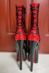 レビュー: 女性アンクルブーツスパンコールクロスブラックジッパーオープントゥハイプラットフォームハイヒールブーツ ポールダンスシューズ