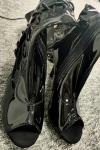 レッドセクシーなオーバーザニーブーツピープトゥレースアップハイヒールオーバーザニーサンダルブーツ