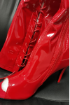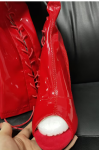 レビュー: レッドセクシーなオーバーザニーブーツピープトゥレースアップハイヒールオーバーザニーサンダルブーツ