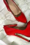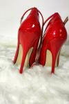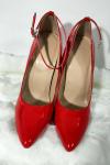 レビュー: パンプス 6.3 インチ ハイヒール パテント アンクル ストラップ パンプス レッド セクシー