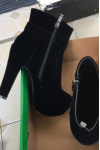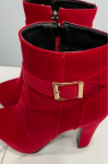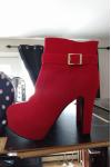 レビュー: チャンキー ヒール ブーツ ラウンドトゥ プラットフォーム アンクルブーツ スエード レッド